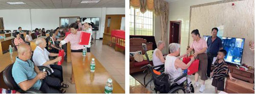 在韶关市长坝村、田心村,60岁以上的老人收到了来自完美公司的节日礼物。党支部一行重点慰问了85岁以上高龄老人及残障人士。慰问对象中包括了一位104岁高龄的老人和一位91岁的长者,志愿者们向他们表达了崇高的敬意和节日的诚挚祝福,祝愿他们健康长寿,安享晚年。