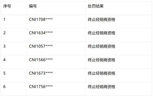 对于严重扰乱市场价格秩序的行为,公司坚持“发现一起、查处一起”的监管原则,根据《长青中国营业守则》规定,现就近期六名经销商违规行为处理情况通告如下: