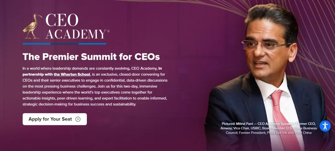 作为在全球180个国家拥有超过34万名会员,影响力覆盖3.62亿名员工的CEO Academy,此次与沃顿商学院(The Wharton School)携手合作,将全球顶尖的企业高管们齐聚一堂,分享实用的经验和见解,潘睦邻(Milind·Pant)便是其中的重要一员。