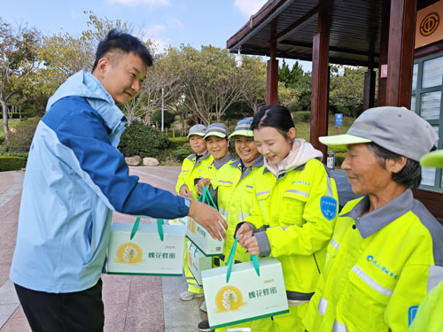 青岛崂山湾城乡发展服务有限公司相关负责人表示:我们非常感谢爱心企业在节日之际送来的温暖,在今后的工作中,要继续发扬不怕苦、不怕累、不怕脏的精神,为干净、整洁、舒适、优美的城市环境贡献自己的力量。