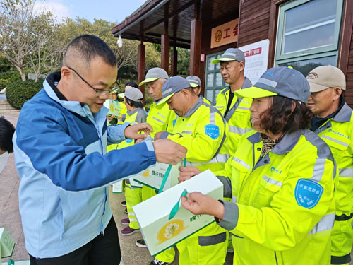 10月29日,在重阳节来临之际,青岛市崂山区城市管理局、青岛崂山湾城乡发展服务有限公司、长青(中国)日用品有限公司联合各中央、省、市媒体向环卫工人送去节日问候,并开展了“致敬‘城市美容师’,爱心奉献环卫人”公益活动。
