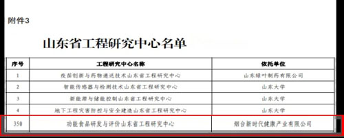 近日,山东省发展和改革委员会正式发布2025 年山东省工程研究中心评价结果。由烟台健康公司与山东省食品药品检验研究院联合共建的 “功能食品研发与评价” 山东省工程研究中心,凭借深厚的科研积淀、卓越的技术创新能力及高效的产学研协同成效,成功通过复审评价,持续稳居省级工程研究中心优质行列,彰显了在功能食品领域的强劲实力与领先地位。