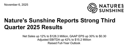北京时间7日,自然阳光发布了2025三季度财报:净销售额达到1.283亿美元,较去年同期增长了12%,创造了历史最佳季报。息税摊销前利润为1500万美元,同比增长了42%;经营利润为900万美元,远超去年同期的530万美元。