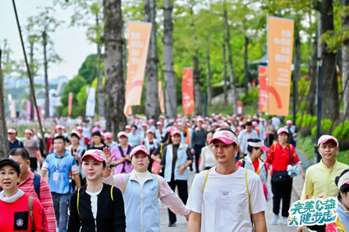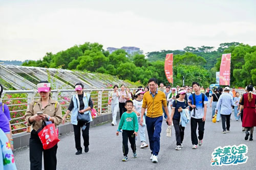 在主舞台之外,中心区域同样精彩纷呈。健康试饮区、趣味互动区、女性公益市集三大空间人气十足。参与者既可学习健康科普知识,也能在游戏中尽情欢笑,更沉醉于公益非遗市集。3位本地女性非遗传承人亲临现场,生动展现壮绣、壮锦、麽乜的精湛技艺,让古老的文化在手工艺间焕发新生。整条3公里金象湖环线还巧妙融入了2个打卡点与2个补给站,为这场秋日健步增添了更多趣味与温暖。