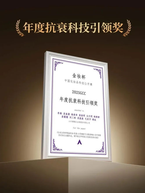 近日,由化妆品行业权威媒体美浪联合新美学主办的 2025「金妆杯」中国化妆品科创公开赛获奖情况公布。由福瑞达生物股份研创团队提报的王浆酸护肤功效机制研究论文,从 169 份参赛科研成果中脱颖而出,与浙江大学化学工程与生物工程学院和倩碧-雅诗兰黛研发中心并列斩获 “2025GCC 年度抗衰科技引领奖”,用硬核科研实力彰显国货抗衰领域的领先地位。
