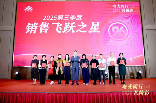 大会特设荣耀颁奖环节,隆重表彰在市场开拓与公益践行中表现卓越的伙伴,颁发“2025第三季度销售飞跃之星、2025年度公益推广大使、新品荣格荣生堂元气®膏销售之星”三大荣耀奖项,鼓舞更多人,与光同行,收获新辉煌!
