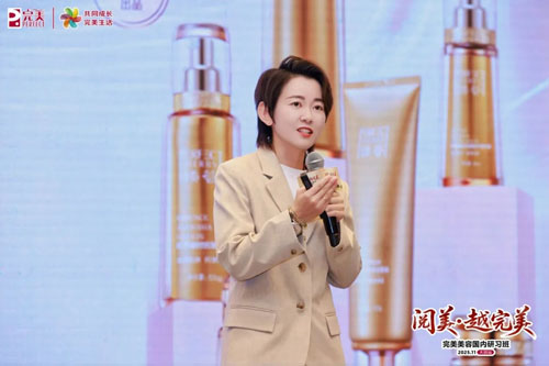 完美公司完美教育美容技能培训室经理刘淼捷,详细讲解了秋冬护肤产品的特点、使用手法及护肤方案。现场互动热烈,大家在实操中掌握了实用的秋冬养肤技巧。