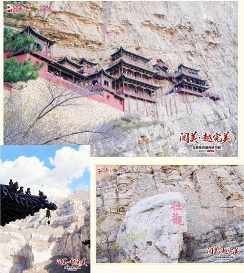 建于千年前的悬空寺,以其"奇、悬、巧"的建筑特色令人惊叹。这座始建于北魏的木质建筑,历经时光更迭悬于悬崖之壁。山寺与崖壁融为一体,自然和谐统一,完美精英们攀悬梯、跨飞栈,穿石窟,钻天窗 ,走屋脊,步曲廊,一起感受了人在画中游的奇妙体验。