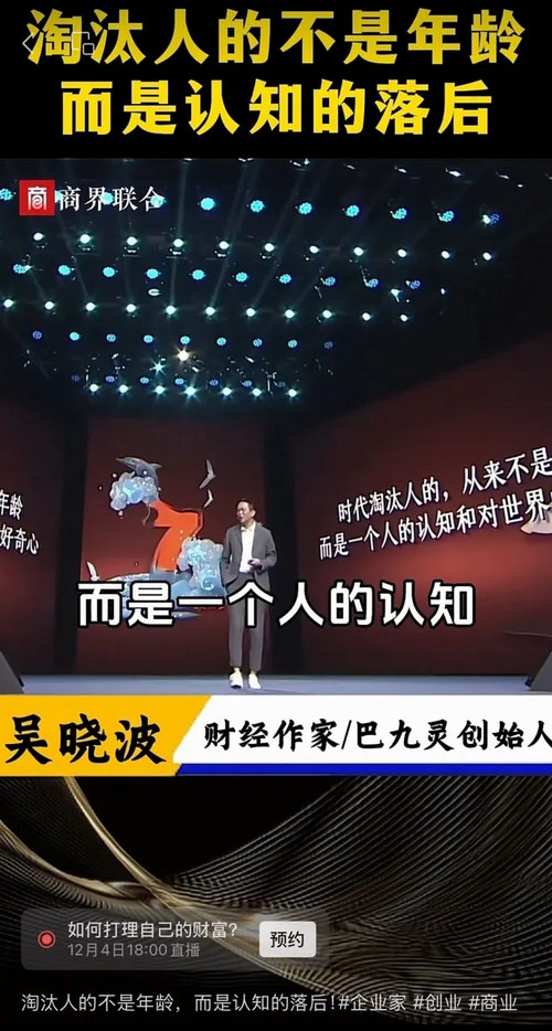 一段是吴晓波先生的分享。他说道:“时代淘汰人的,从来不是年龄,而是一个人的认知,对世界的好奇心。”这句话,像一记响钟,敲在我的心上。他点出了一个我们或许都曾感受过,却未必深思的现象:有些人年纪尚轻,思维却已经僵化,止步不前;而有些人无惧年龄,却始终持续学习、进步。这其中的区别,就在于“认知”与“好奇心”,在于我们是否愿意拥抱变化。