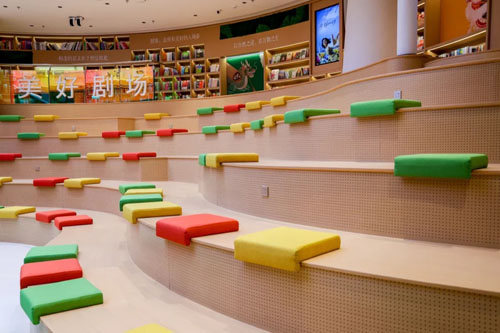 环形美好剧场可同时容纳100多人,这里的千余册藏书,是根据“身体健康”“情绪健康”“个人成长”等美花花瓣精心遴选的,场内的非遗“粤绣”,同样对应着美花的各个花瓣,让这里成为集中展现美花理念的地方。作为多功能的社群空间,这里特别聚气,无论是TED演讲,还是个性化表彰,都是不二之选。