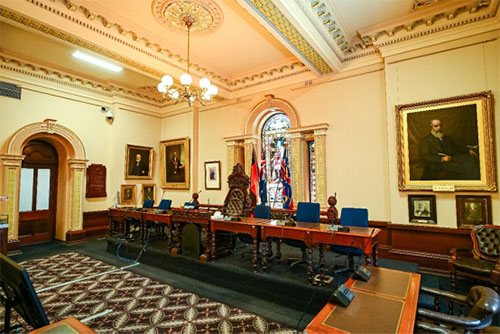 (自然阳光一行与市议会议员菲利普·马顿在阿德莱德市政厅合影)