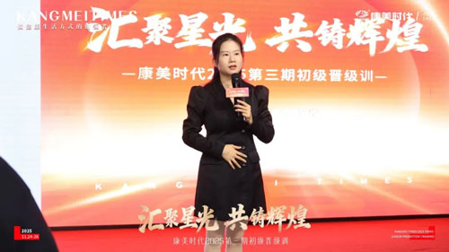 随后,康美时代教育经理刘碧柔,系统阐述了市场运营的核心法则,并解析了公司线上线下联动的双域赋能体系,为康美伙伴提供从专业提升到实战落地的全方位支持。