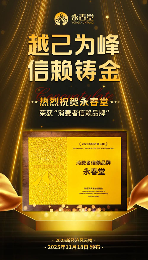 《2025 新经济风云榜》颁奖现场传来好消息 —— 永春堂正式拿下“消费者信赖品牌”荣誉!从“越己为峰” 的自我迭代,到 “信赖铸金” 的口碑沉淀,这份奖项不仅是新经济领域的认可,更是每一位用户用选择投来的 “信任票”
