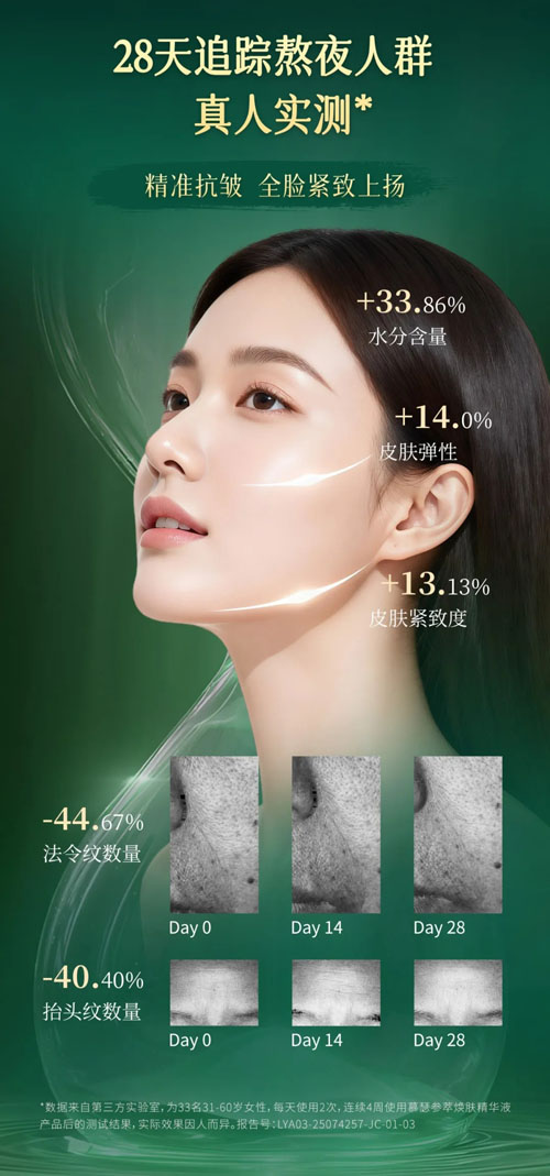 2.纳米级渗透技术:采用80nm纳米乳液载体技术,将人参皂苷等活性成分封装为微球,大幅提升透皮吸收率,确保营养成分穿透角质层直达肌底。