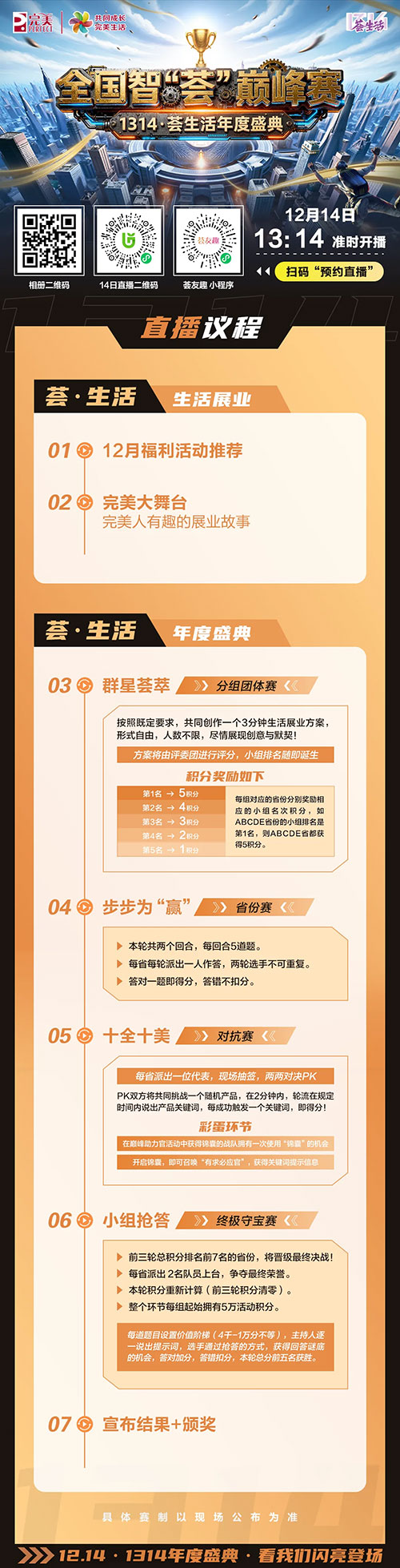 完美1314荟生活年度盛典智荟巅峰赛将举行