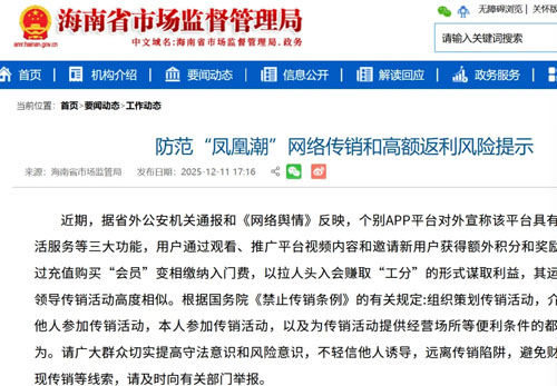 海南:防范“凤凰潮”网络传销和高返风险提示