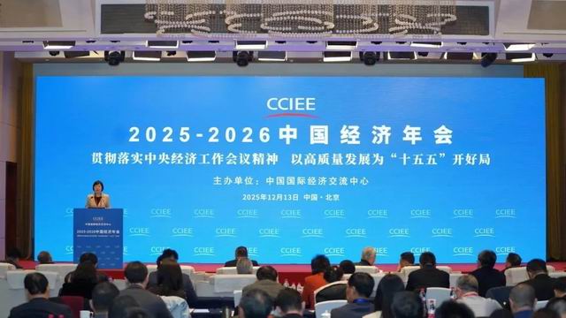 2025年12月13日,由中国国际经济交流中心主办的“2025—2026中国经济年会”在北京召开。本届年会以“贯彻落实中央经济工作会议精神,以高质量发展为‘十五五’开好局”为主题,来自中央财办、国家发展改革委和有关部门的领导,专家学者、企业家、智库代表和媒体代表300余人参加了年会。