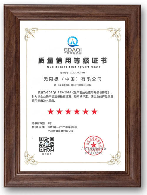 这是广东省质量检验协会开展的产品质量信用评定的最高等级,代表企业拥有长期、稳定、可信赖的质量记录。