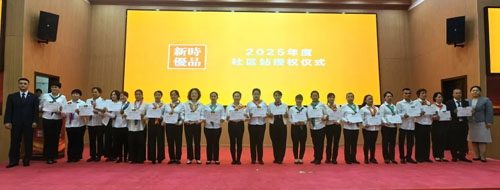公司市场总监王宝玉、海南分公司总经理庄中辉共同为2025年度社区站颁授“授权书”,并为社区站示范店负责人颁发荣誉证书,表彰他们在社区深耕、专业提升、开拓进取等方面的突出贡献,激励全体海南新时代人以榜样为引领,共促发展。