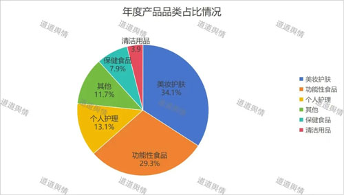 美妆护肤与功能性食品形成“双主线并进”的格局,成为行业增长的核心引擎。美妆护肤类产品以114款产品数量占据34.1%的绝对优势成为第一大品类,其中抗衰单品凭借天然成分与科技赋能,成为年轻消费群体的 “心头好”。