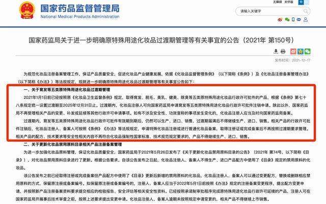 除此以外,国家药监局不再受理相关产品的变更、补发或延续等其他行政许可申请事项。如有不涉及安全性、功效宣称的事项发生变化的,化妆品注册人应当及时向国家药监局备案。