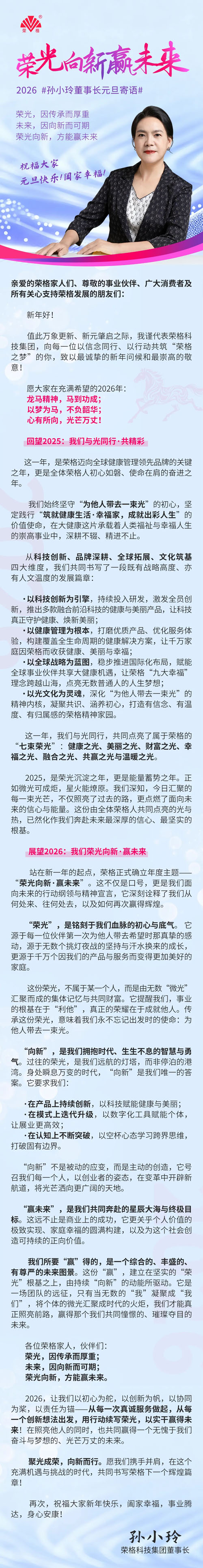 荣格孙小玲元旦寄语:我们荣光向新 赢未来