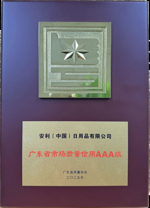 安利(中国)凭借深厚的质量诚信文化和卓越的经营管理实践,荣获广东省质量协会授予的2025年度广东省市场质量信用 “AAA”认证,“AAA”等级是该认证的最高等级。此次评价基于《企业市场质量信用等级评价准则》(T/CAQ 20301-2023),从质量信用意愿、保障能力及市场表现等多维度严格审核。“AAA”等级是对安利(中国)坚守“诚信为本、品质至上”价值观的充分肯定,彰显了公司在推动行业信用体系建设中的标杆作用。