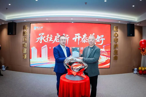 “洞见”雕塑赠送仪式上,集团副总裁胡均安先生将寓意深远的“洞见”雕塑赠予绿之韵数字化,彭总郑重接赠。“洞见”,是穿透表象的能力,更是绿之韵数字化面向不确定未来的定力,象征精准把握时代机遇,锚定长期价值。