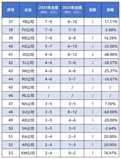 5.0亿元~3亿元(29家): 徘徊在盈亏平衡线上下,仍处于生存挣扎期。