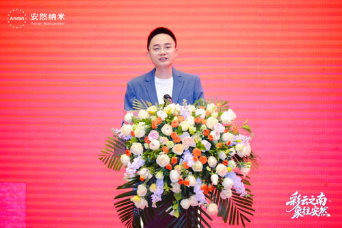 在热烈昂扬的氛围中,安然集团副董事长兼安然纳米营销及研发总裁刘金坤先生登台致辞。他首先向所有精英伙伴们致以最热烈的祝贺,并表示这场云南之约,是大家用汗水与拼搏赢得的荣耀勋章。