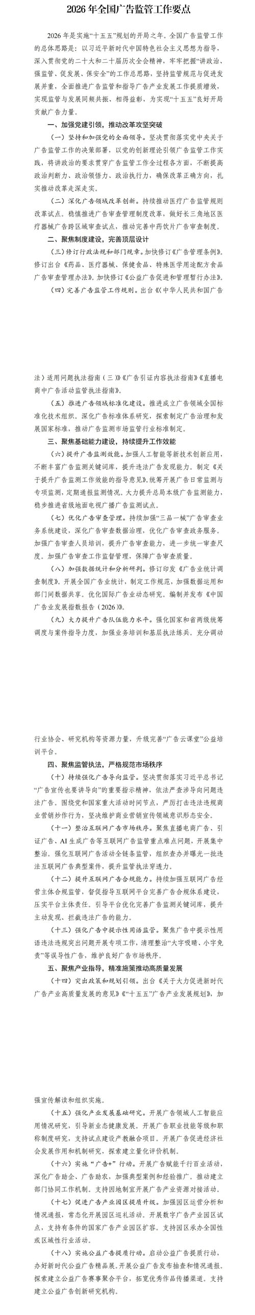 总局发布《2026年全国广告监管工作要点》