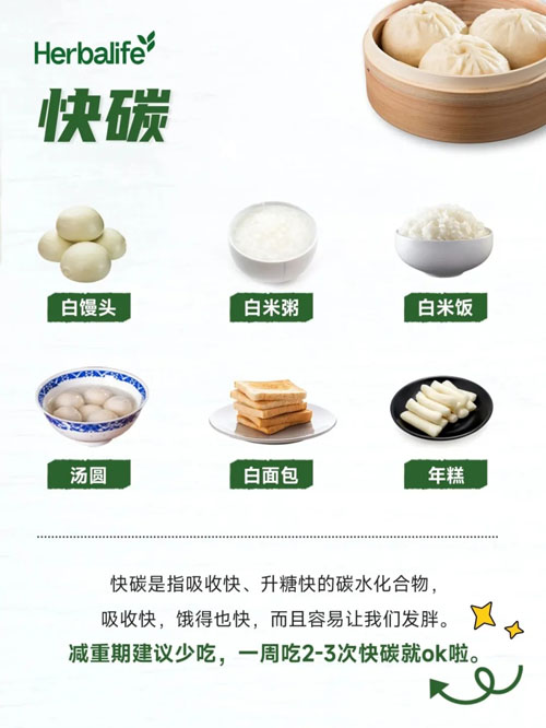 除了优质和劣质,碳水化合物还可以按照"消化速度"分为快碳和慢碳。一个简单的建议是:一餐中尽量让慢碳的比例高一些。比如把白米饭换成糙米或杂粮饭,把白面包换成全麦面包,把土豆换成红薯。