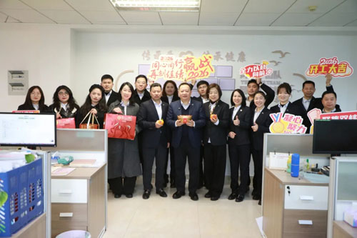 每到一处,欢声笑语不绝于耳,暖意充盈。高炜总裁与员工们亲切握手、互致问候,现场气氛热烈融洽,并勉励大家在新的一年里,要一马当先,铆足干劲,乘势而上,再创佳绩。