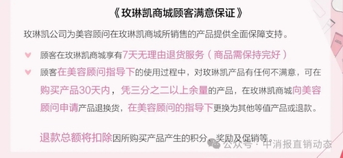 信任筑牢:全周期保障体系护航消费安全。为破解美妆行业售后争议、假货泛滥等消费痛点,玫琳凯建立了远超行业标准的消费保障体系。在“7天无理由退换”基础上,推出“30天顾客满意保证”,消费者若对产品功效不满意,可凭剩余余量申请退换,有效打消试用顾虑。
