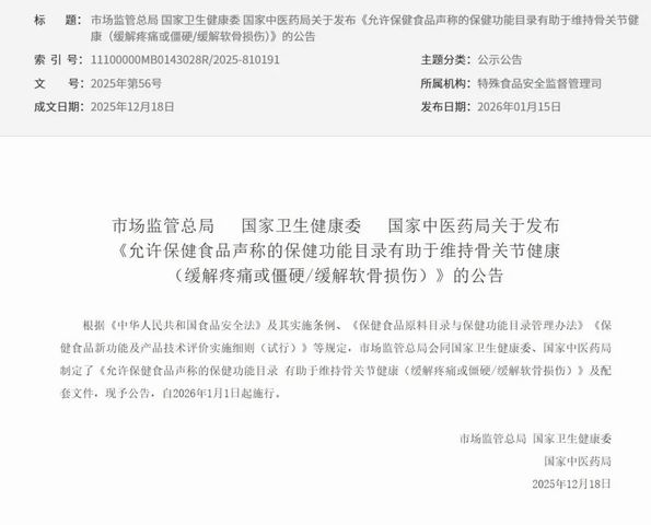 四是严守功能目录,规范功能宣称。2023年,市场监管总局、国家卫生健康委、国家中医药局联合发布《允许保健食品声称的保健功能目录 》,允许保健食品声称有助于增强免疫力、有助于抗氧化、辅助改善记忆等24项保健功能。今年初,“有助于维持骨关节健康(缓解疼痛或僵硬/缓解软骨损伤)”正式纳入保健功能目录,当前合法可宣称的保健功能已更新为25项。经营者需严格对照目录开展宣传,不得超出目录范围擅自宣称其他保健功能。