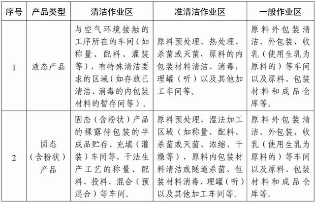 其他类型产品的生产车间及作业区划分参照表 2 执行。