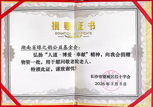 望城区红十字会副监事长邓燕洁向绿之韵公益基金会颁发爱心证书