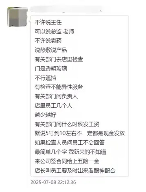 图为警方查封的某养生馆工作群培训话术截图。(受访者供图)
