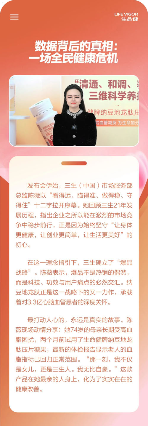 三生生命健牌纳豆地龙肽新品上市发布会举行
