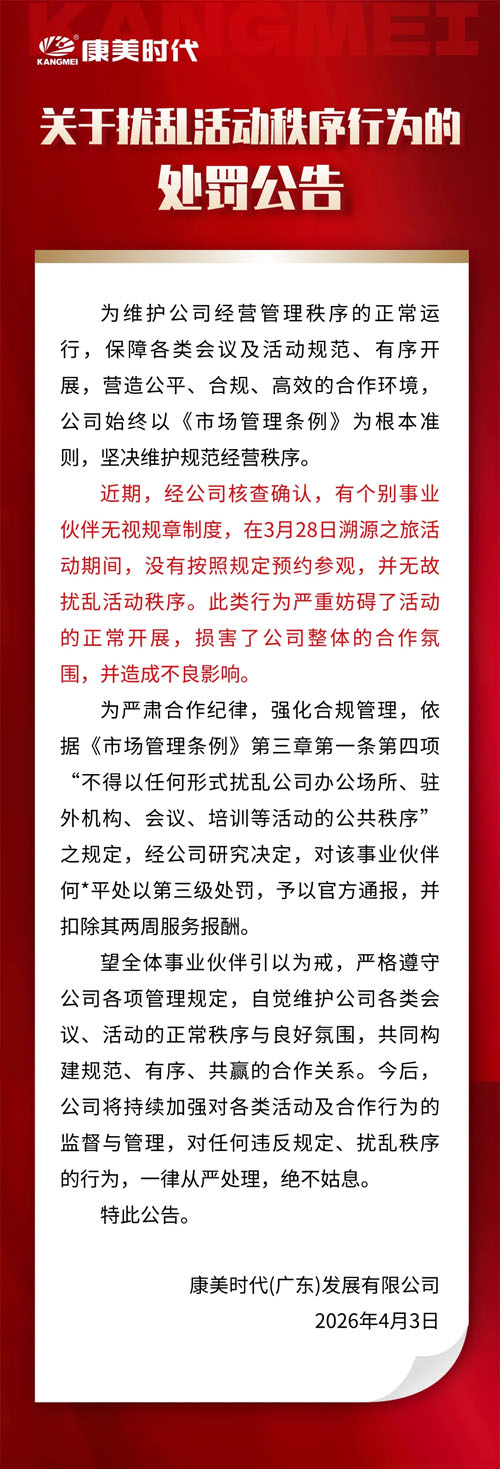 康美时代关于扰乱活动秩序行为的处罚公告