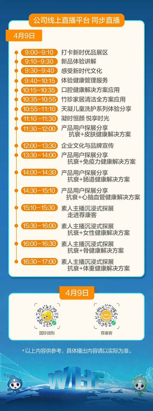 4月9日,公司将继续通过直播平台对健博会现场情况进行直播。