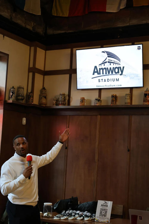 伴随着新LOGO的亮相,安利还特意组织了一场以体育名义的公益捐赠活动,大急流城俱乐部的主席达里乌斯·巴恩斯(Darrius·Barnes)将社区成员捐赠出的新足球装备:足球、足球鞋、护腿板等,一一捐赠给了大急流城地区的公益组织。