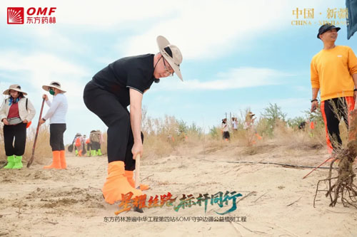 何涛先生面对广袤的荒漠与并肩同行的伙伴,讲述了发起此次行动的初心:“此刻我们脚下的,不仅是丝路古道,更是生态前线。我们开启‘守护边疆公益植树工程’,是希望以企业微光,响应国家‘绿色发展’的号召。我们想做的,是真正为这片土地留下点什么 —— 不止于旅行足迹,更是一棵棵能扎根、能固沙、能惠及后人的希望之苗。东方药林愿与全国伙伴一道,持续耕耘,让这份绿色的善意,如胡杨般向下扎根,向上生长,绵延不息。”