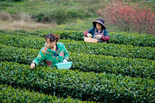 聘请周边村民在茶园采茶