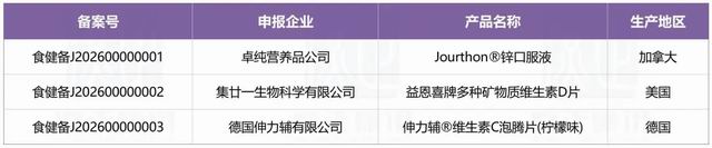 3个进口备案产品分别来自加拿大、美国和德国。
