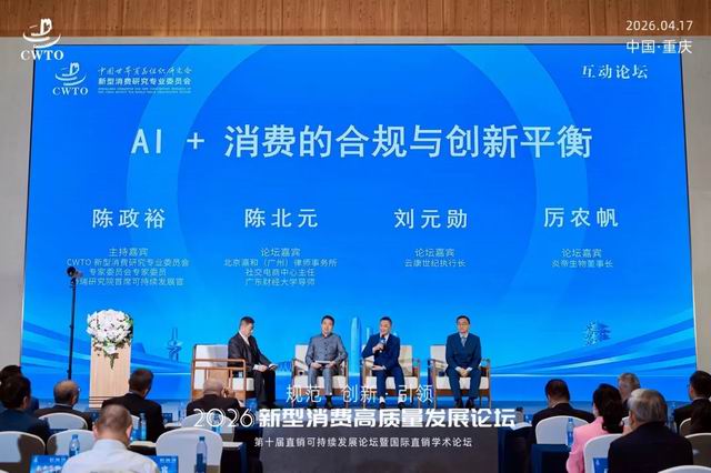 4月17日,由中国世界贸易组织研究会主办的2026新型消费高质量发展论坛在重庆召开。论坛以"规范 创新 引领"为主题,立足扩大内需战略基点,聚焦新型消费领域合规建设、科技创新与价值升级,吸引政企学研各界精英参会,共探行业高质量发展路径。炎帝生物厉农帆董事长作为特邀嘉宾,在本次论坛分享合规与创新实践经验。