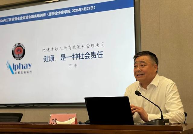 4月27日,安惠董事长陈惠应邀在2026年江苏省民营企业社会服务培训班以《健康,是一种社会责任》为题进行授课,围绕民营企业履行社会责任的核心议题,与来自全省工商联系统社会服务领域的50多位企业家及代表展开深入交流。