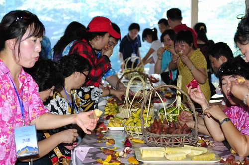 10月30日早上,大家在泰国珠宝中心了解到了泰国珠宝的开采历史以及珠宝加工知识,很多伙伴在那里选购到了自己心爱的珠宝首饰。而在泰国当地的热带水果园,大家不仅品尝到了各色热带水果,而且还了解了当地水果的生长周期和品种等知识。中午,大家在龙虎园享用了一顿特别的午餐——鳄鱼肉制作的各种食物,随后还观看了惊险的人鳄大战表演。下午,前往度假圣地“芭堤雅”。在入住芭提雅最大五星级酒店——国宾馆后,大家又一起在芭堤雅艺城观看了主题为泰国历史的大型歌舞表演,精彩的表演,恢弘的舞台,绚丽的风光,把泰国各个王朝的历史呈现在大家的眼前。