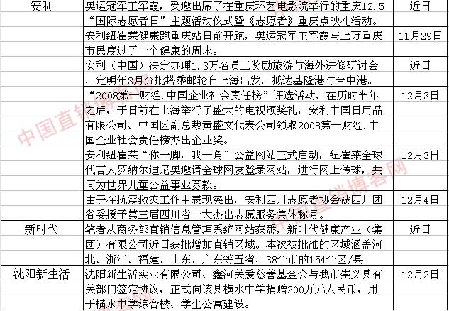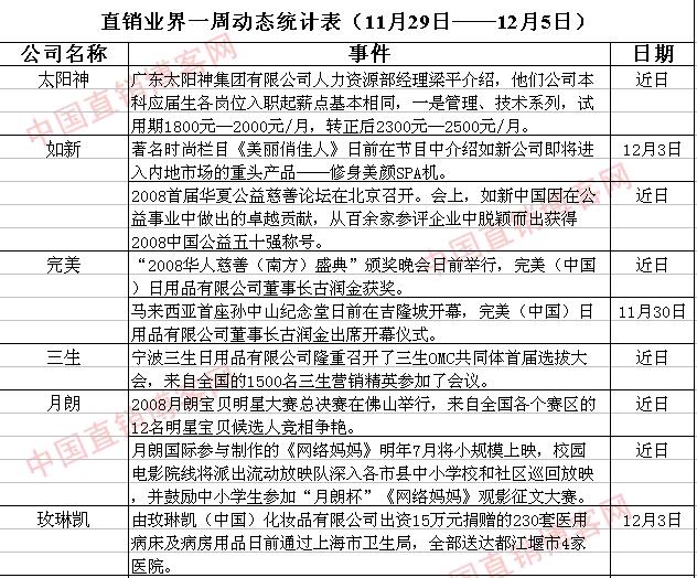 直销界一周动态统计表(11月29日—12月5日)