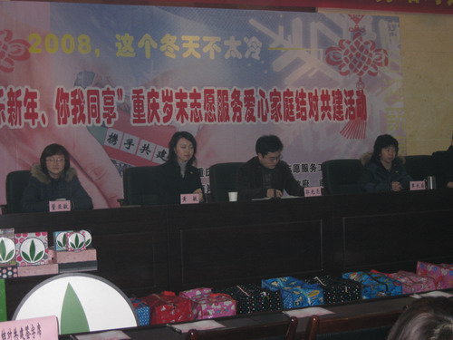 开展重庆岁末爱心志愿服务家庭结对共建活动,为弘扬“奉献、友爱、互助、进步”的志愿者服务精神,让我们用爱与希望打造出一个暖情的冬天。